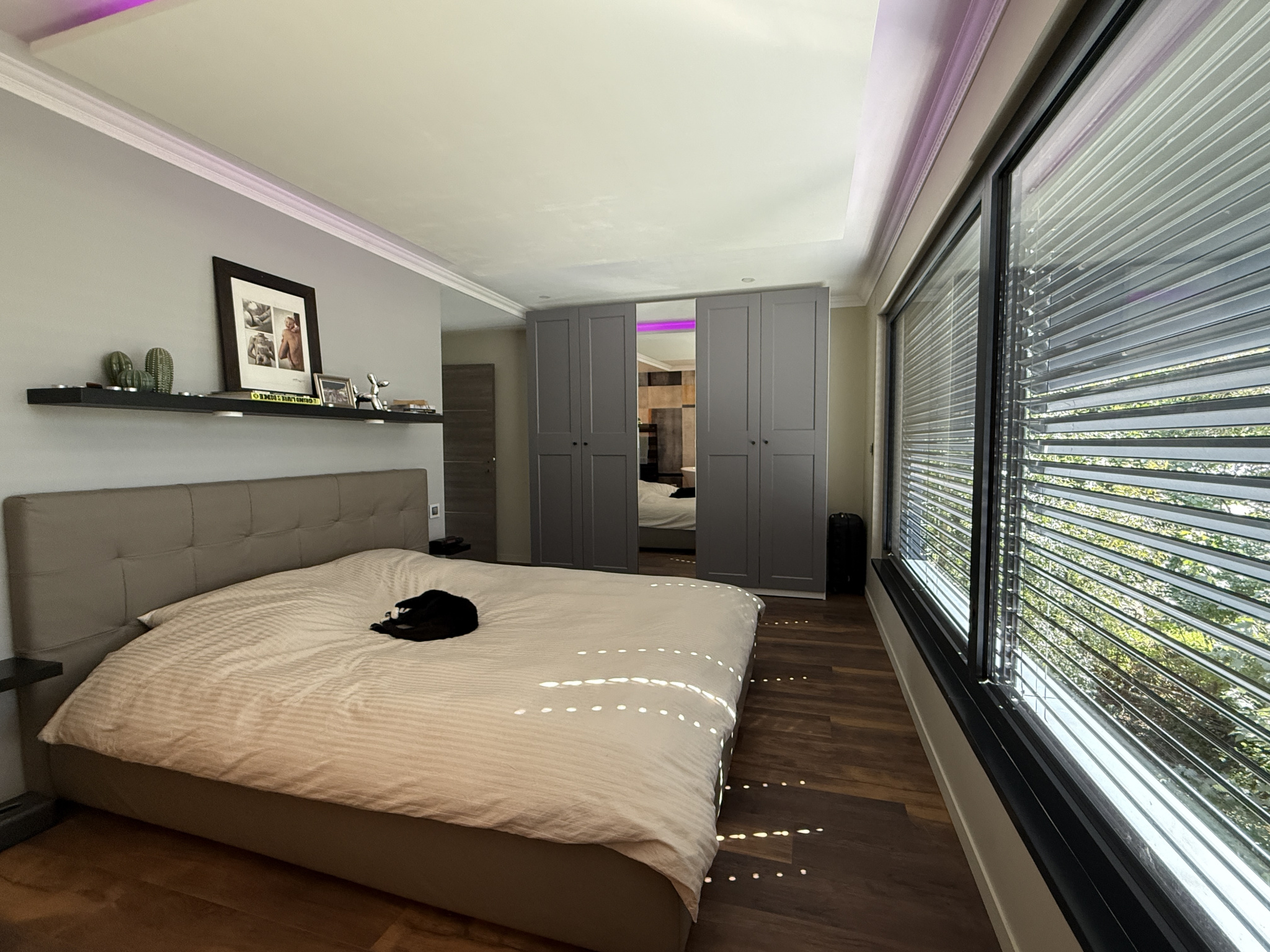 Le confort de la maison est assuré par un poêle à pellets, ballon thermodynamique, des BSO, des menuiseries en aluminium haut de gamme Paralu Lyon sans seuils, un escalier en acier design et un plancher de verre, un réseau Starlink, un portail automatisé avec digicode et caméra et bien d’autres prestations haut-de-gamme associées à des finitions de qualité